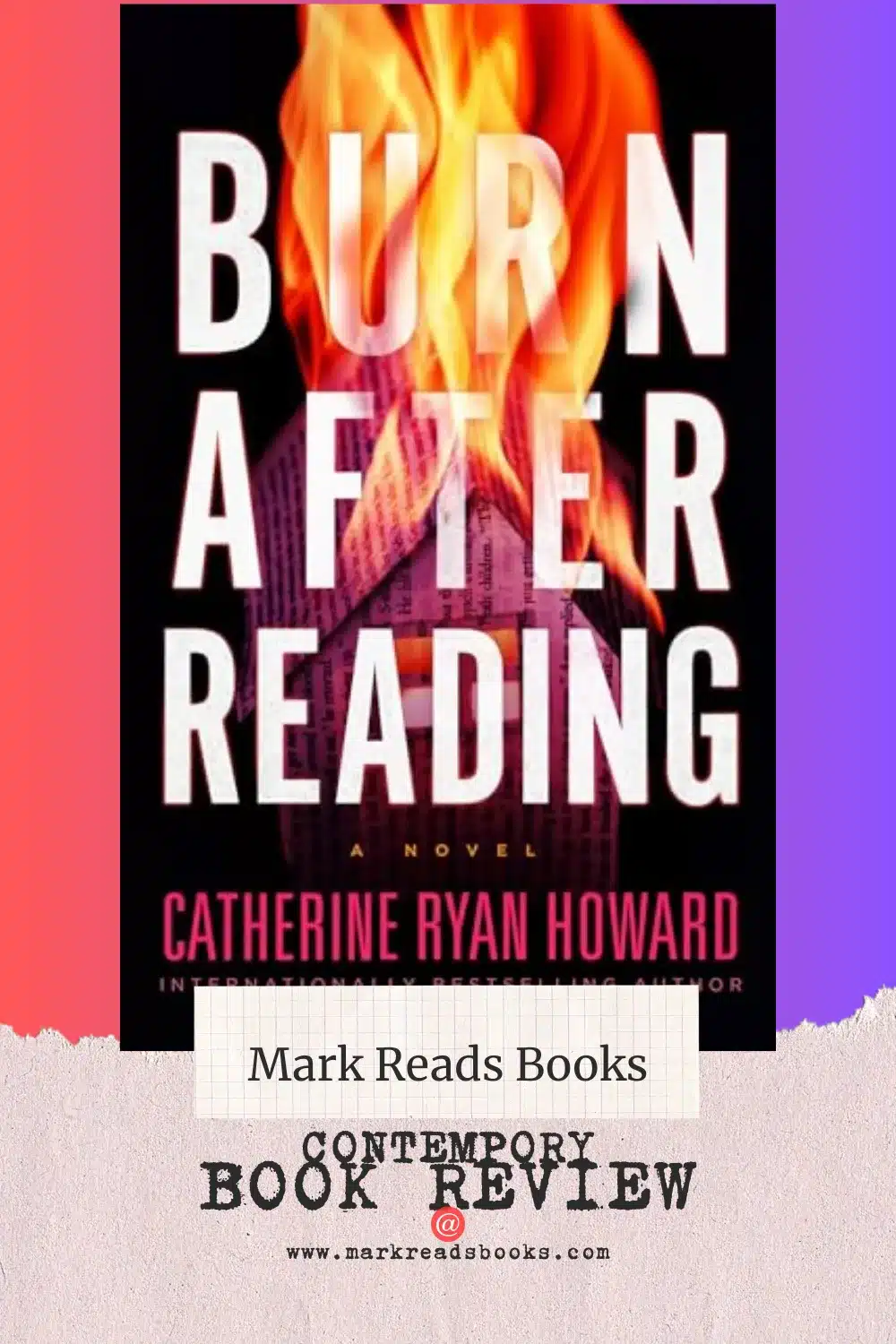 Burn After Reading by Catherine Ryan Howard wb Pinterest pin 1 Leave a Comment / By mark / 29, September 2025